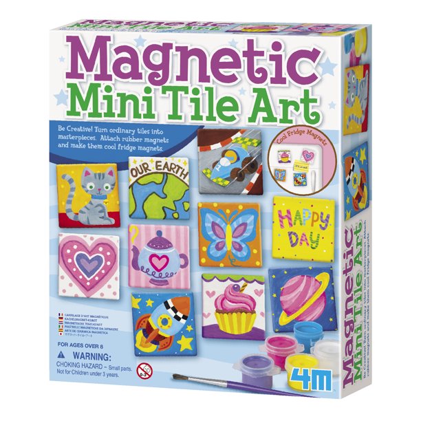 • Spark creativity and paint colorful mini works of art with the 4M Magnetic Tile Art Kit. Paint ordinary ceramic tiles with unique, custom art designs and attach magnets to transform them. Combine the paint colors to create even more colors. Customize each tile with your unique artistic touch. This complete kit includes twelve blank tiles (2 x 2 inches), adhesive-backed magnetic strips, five paint colors and one paint brush. Recommended for ages 8 years and up