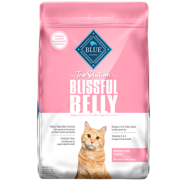 • Contains one (1) 11 lb. bag of BLUE True Solutions Blissful Belly Digestive Care Adult Cat Food, Chicken