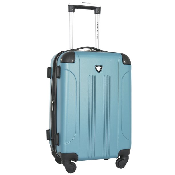 Travelers Club 20″ ABS Spinner Rolling Carry-on. This hard-side luggage expands 2″ for extra packing room, has 4 easy glide spinner wheels and a locking telescopic handle. This bag includes a top and side carry handle and is fully lined. Packing room size is 20″ x 13.5″ x 9″ and the total height including the wheels is 21.5″ x 13.5″ x 9″, thus making it eligible to meet most airline carry-on restrictions.Weighs only 6.5 lbs.